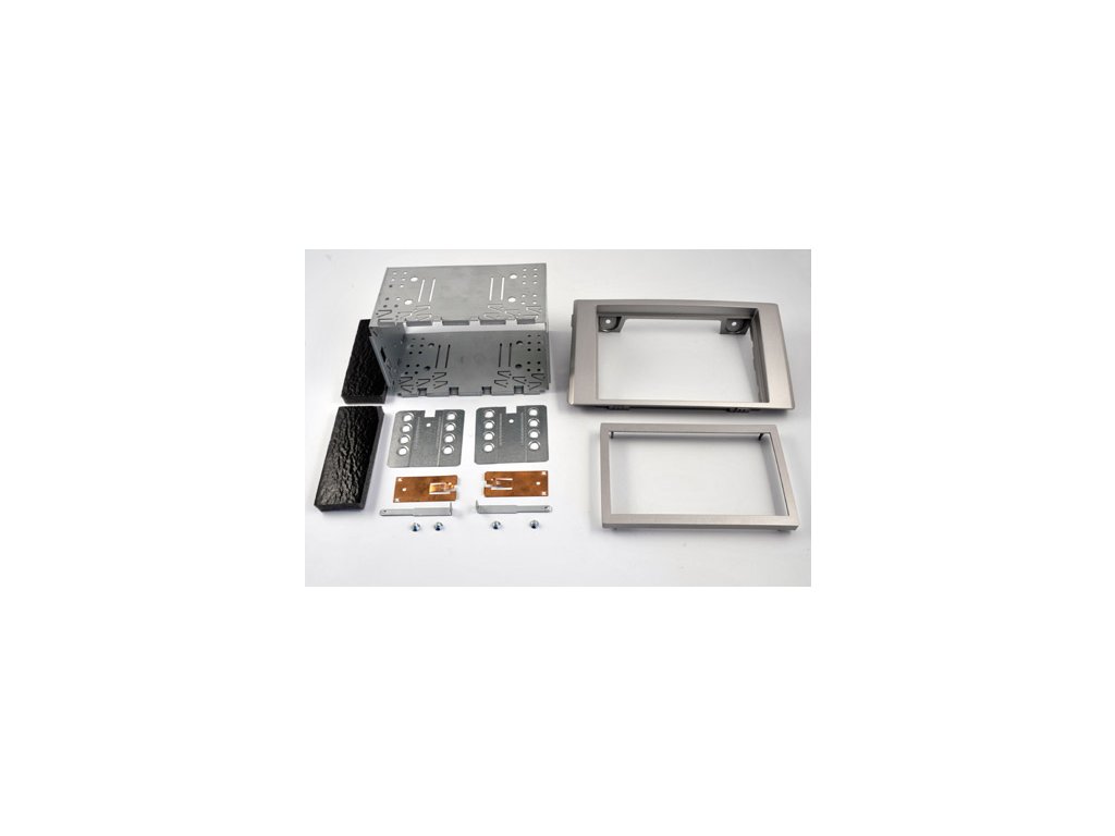 Plastový adaptér ve stříbrné barvě s kovovým rámečkem slouží pro montáž neoriginálního 2DIN autorádia.