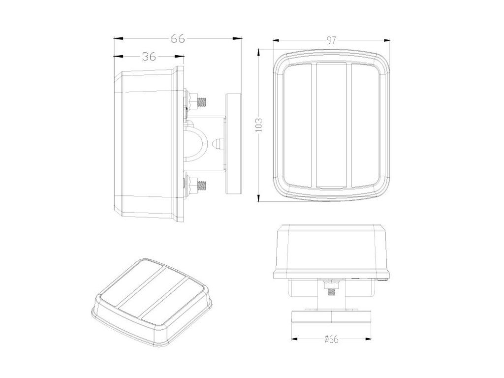 • směrové (5x LED), brzdové (5x LED), poziční (5x LED), osvětlení registrační značky (4x LED)