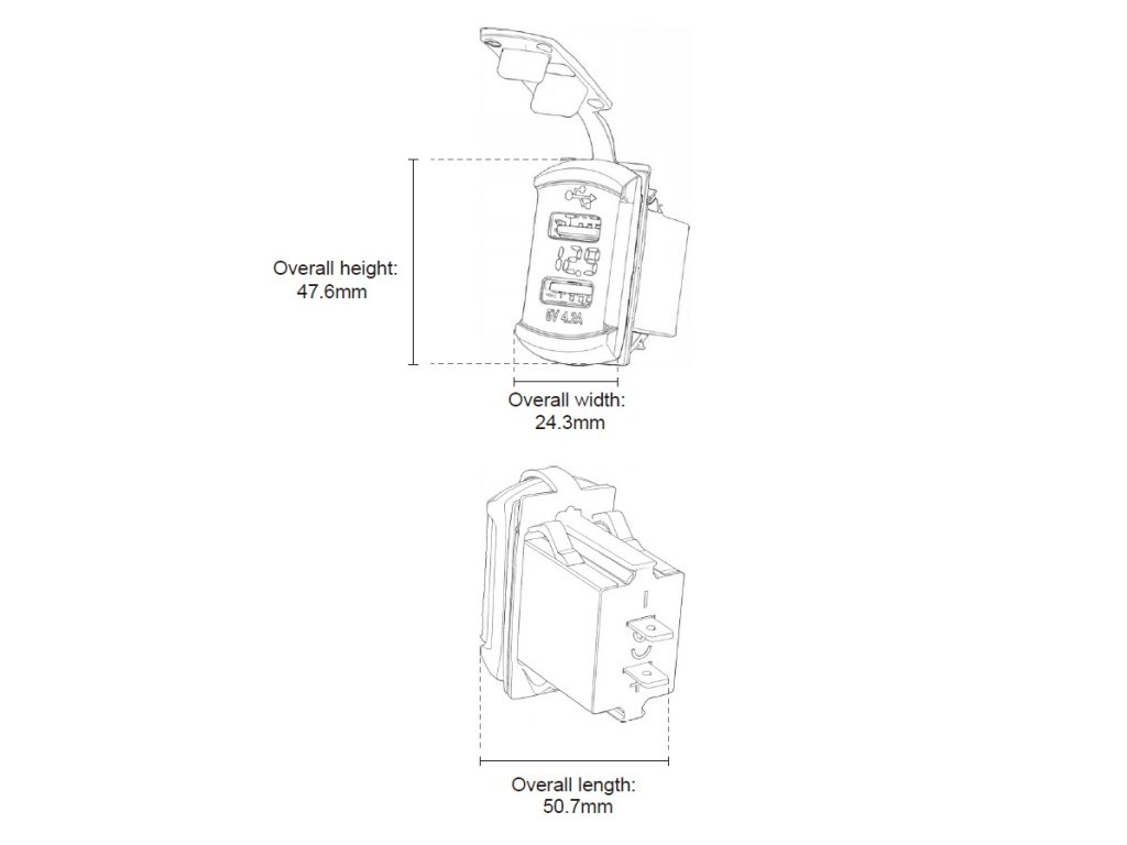 • rozměr montážního otvoru: 37 mm x 22 mm