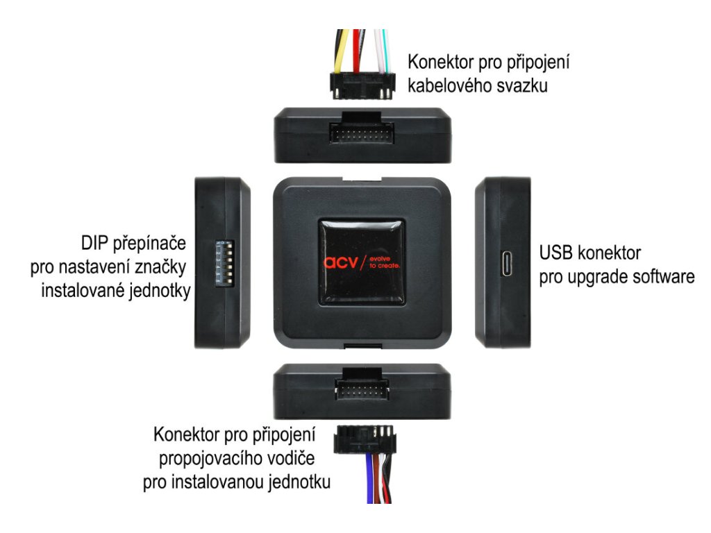- univerzální propojovací adaptér pro jednotky se vstupem pro ovládání na volantu s JACK 3,5mm konektorem, volným vodičem i pro jednotky s funkcí "učení" funkcí tlačítek na volant