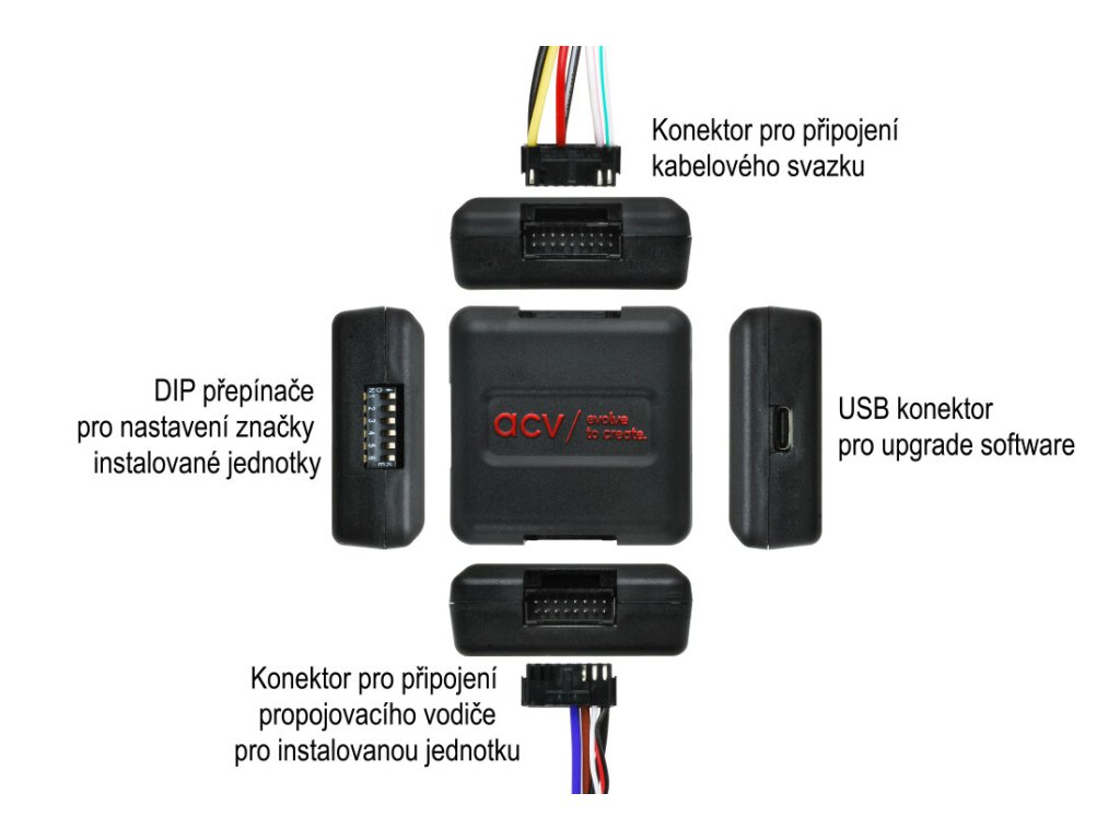 - univerzální propojovací adaptér pro jednotky se vstupem pro ovládání na volantu s JACK 3,5mm konektorem, volným vodičem i pro jednotky s funkcí "učení" funkcí tlačítek na volant