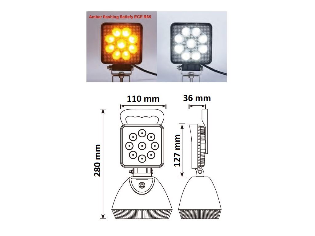 AKU LED světlo s magnetem, bílá/oranžová, 9x3W