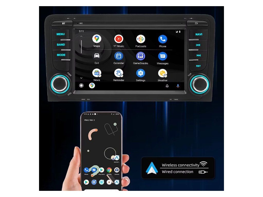 Autorádio pro AUDI A3 2003-2011 s 7" LCD, Android, WI-FI, GPS, CarPlay, 4G, Bluetooth