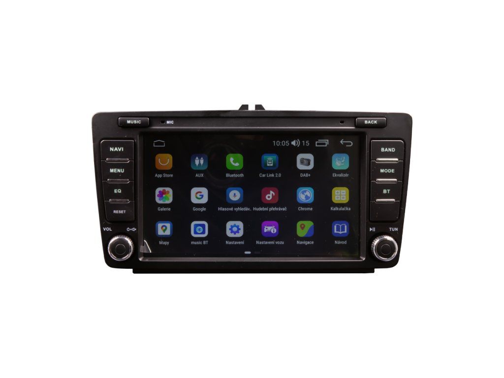 Multimediální autorádio v OEM tvaru s operačním softwarem Android, Wi-Fi, GPS, Bluetooth, CarPlay, Mirror link, 4G.