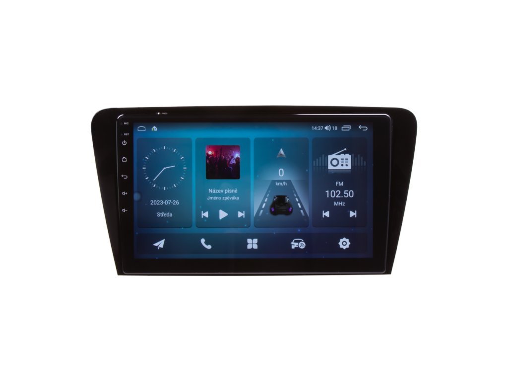 Multimediální autorádio v OEM tvaru s operačním softwarem Android, Wi-Fi, GPS, Bluetooth, CarPlay, Mirror link, 4G.