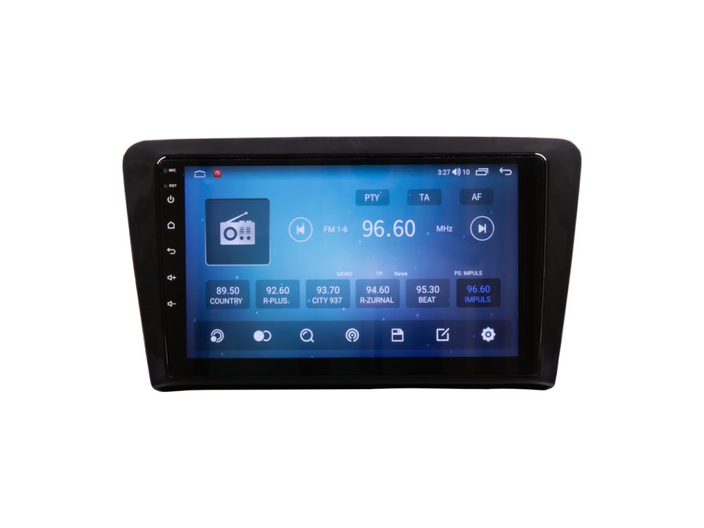 Multimediální autorádio v OEM tvaru s operačním softwarem Android, Wi-Fi, GPS, Bluetooth, CarPlay, Mirror link, 4G.