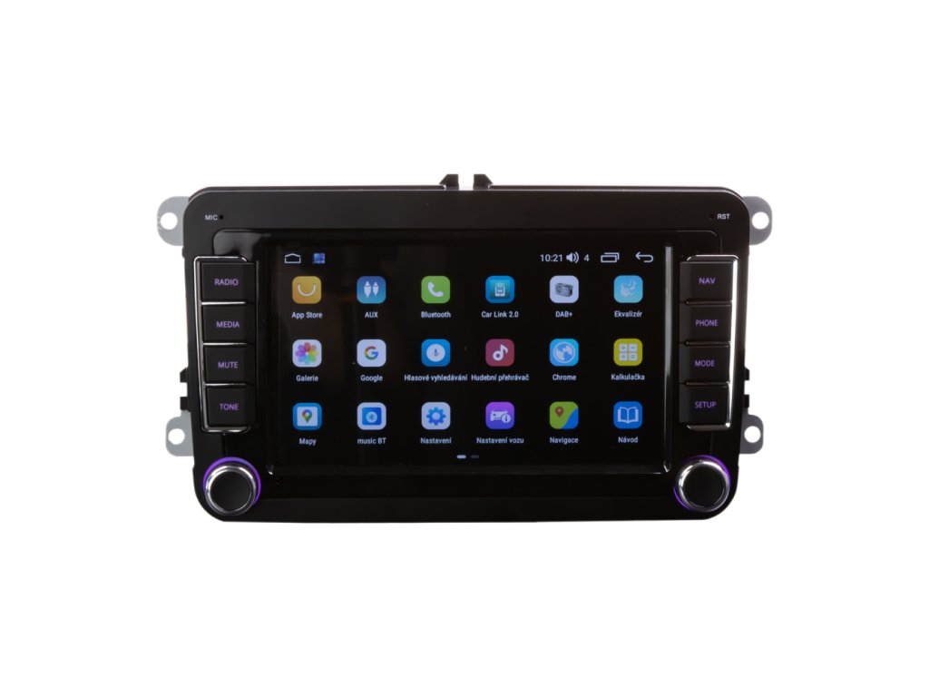Multimediální autorádio v OEM tvaru s operačním softwarem Android, Wi-Fi, GPS, Bluetooth, CarPlay, Mirror link, 4G.