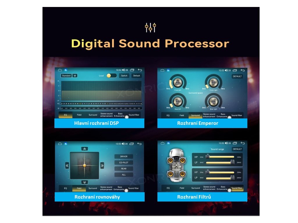 Multimediální autorádio v OEM tvaru s operačním softwarem Android, Wi-Fi, GPS, Bluetooth, CarPlay, Mirror link, 4G.
