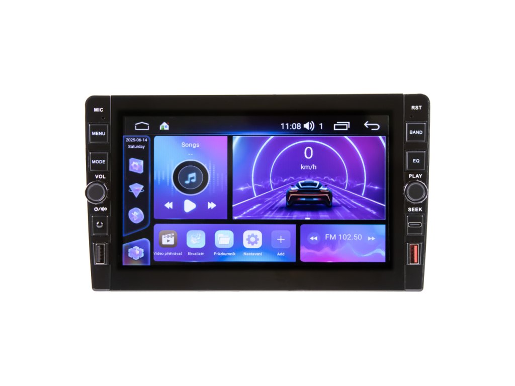 Multimediální autorádio s 8" IPS displejem, netradičním designem s operačním softwarem Android, Wi-Fi, GPS, Bluetooth, CarPlay, Mirror link, 4G.