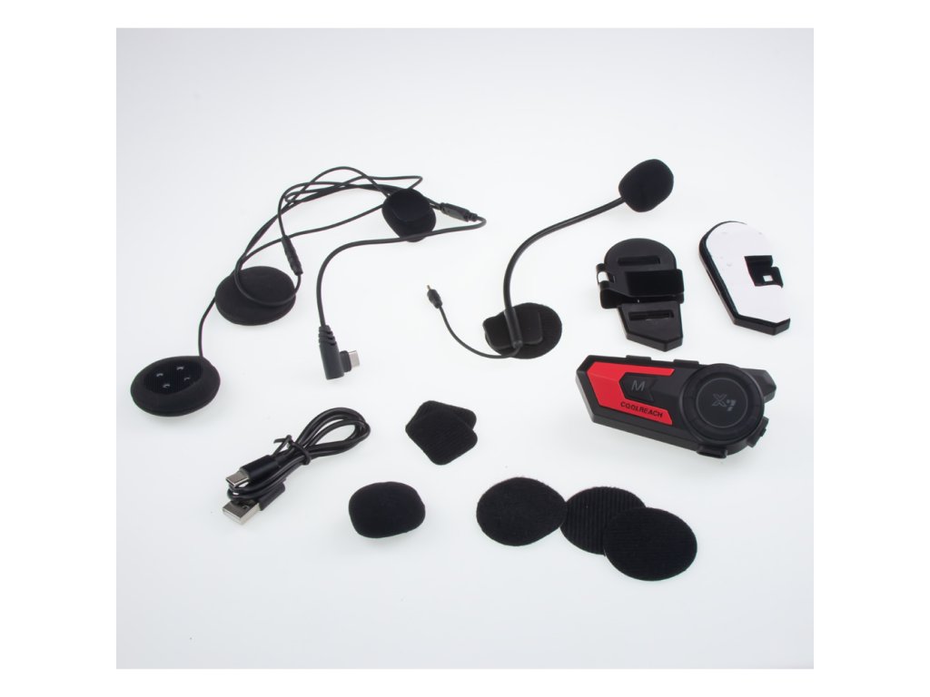 - obsah balení: jednotka pro instalaci na helmu, dva druhy montážního uchycení jednotky klip nebo nalepovací, spojovací kabeláž, sluchátka, mikrofon na pružném držáku, mikrofon pro instalaci vně helmy, 2 x nalepovací suché zipy pro sluchátka, 2 x nalepovací suchý zip pro mikrofon, 1x USB/USB-C kabel.