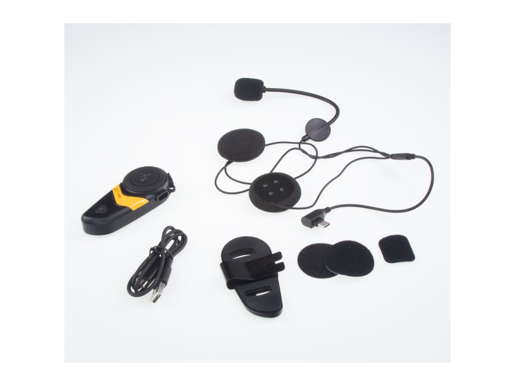 - obsah balení: jednotka pro instalaci na helmu, dva druhy montážního uchycení jednotky klip nebo nalepovací, spojovací kabeláž, sluchátka, mikrofon pro instalaci vně helmy, 2 x nalepovací suché zipy pro sluchátka, 1 x nalepovací suchý zip pro mikrofon, 1x USB/USB-C kabel.