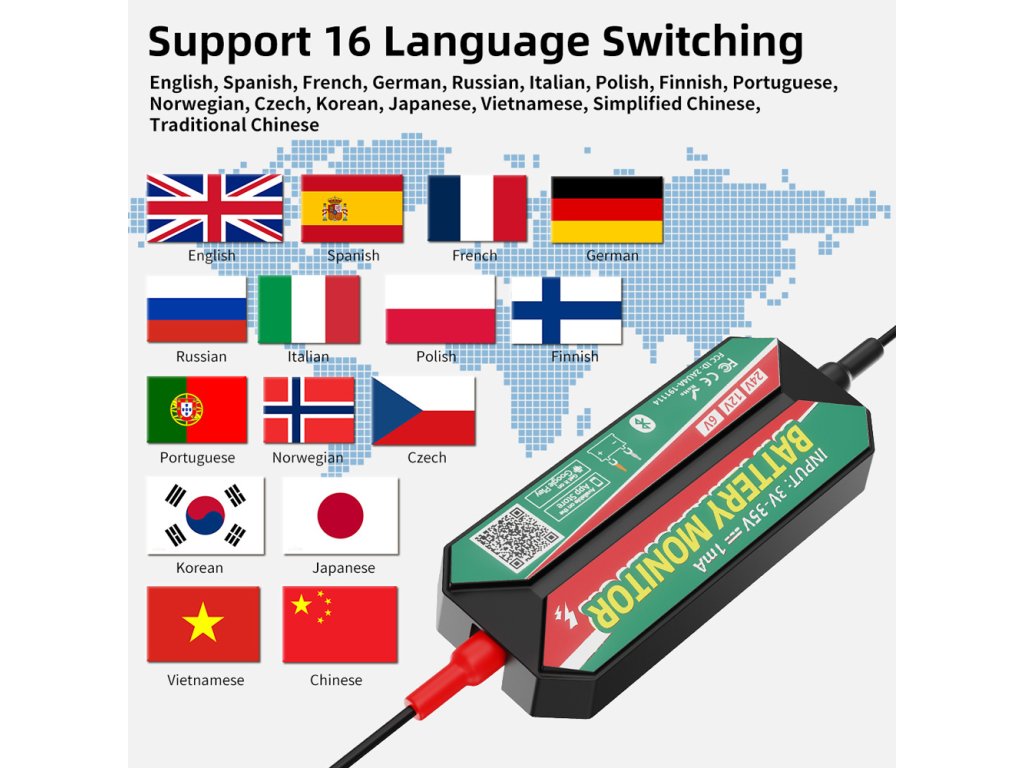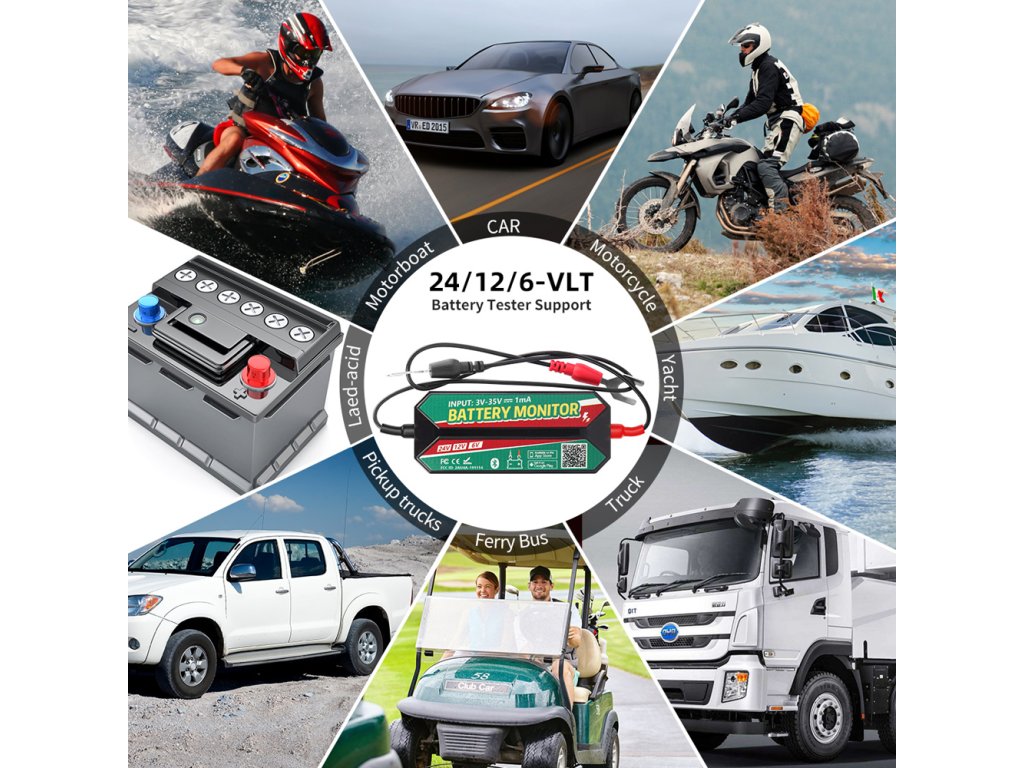 Smart Battery Monitor pro 6 V / 12 V a 24 V baterie. Moderní bezdrátový monitor 35954m je špičkové zařízení pro přesný a bezpečný dohled nad akumulátory v autech, motorkách, lodích i v solárních úložištích. Pomocí technologie Bluetooth umožňuje nepřetržité sledování stavu olověných i lithiových baterií (včetně LiFePO4) z vašeho mobilního telefonu. Integrovaná aplikace (Android / iOS) přehledně zobrazí aktuální napětí, teplotu, stav nabití (SoC), varuje na kritické hodnoty a uchovává přehlednou historii měření.