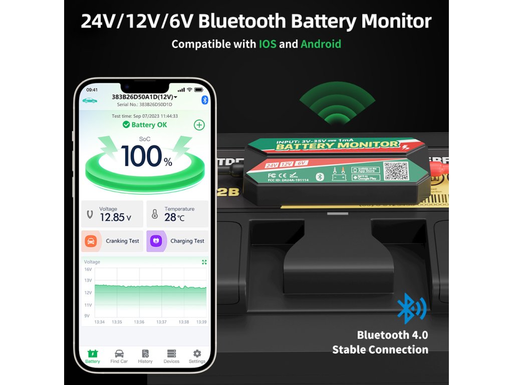 Modernizujte svůj dohled nad baterií a už nikdy nezůstaňte na cestách kvůli vybití! Stačí připojit, nainstalovat aplikaci a sledovat baterii z pohodlí telefonu v reálném čase.