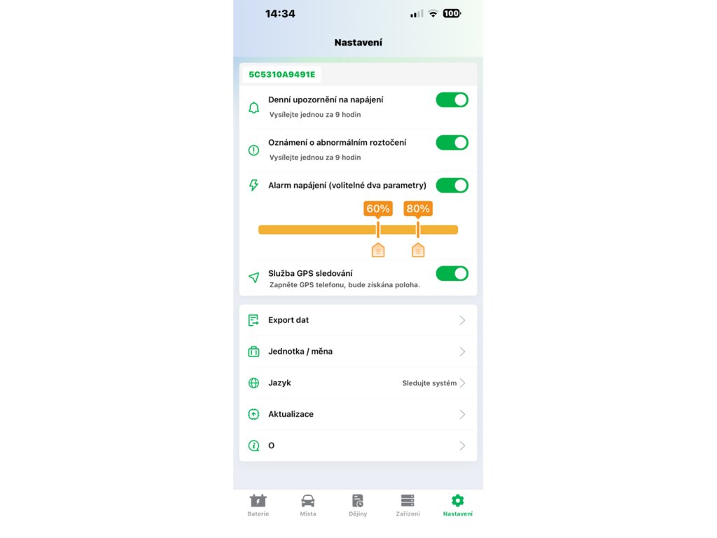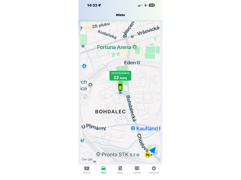 • přehledná aplikace v češtině (grafy, alarmy, sledování trasy i polohy vozidla)