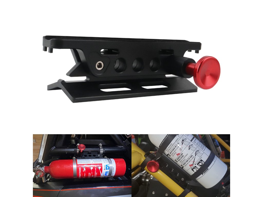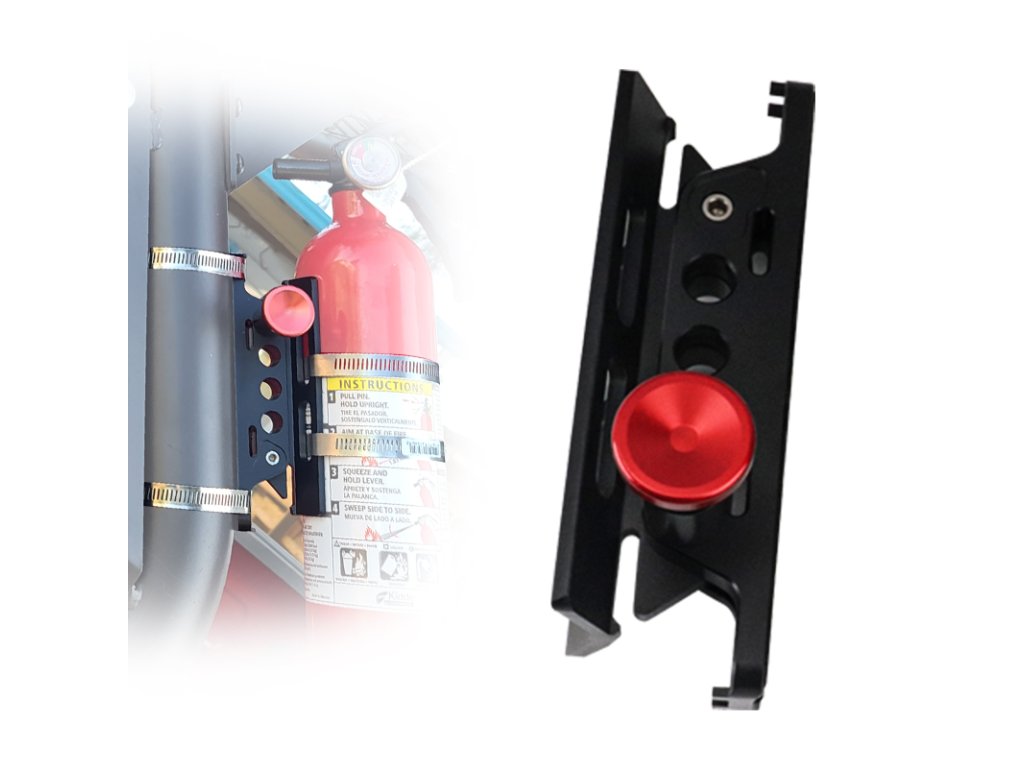 Tento robustní a snadno použitelný držák umožňuje bezpečnou montáž hasicího přístroje v automobilu, závodním voze nebo v dílně. Díky rychloupínacímu mechanismu lze přístroj velmi rychle a bez nástrojů uvolnit či upevnit — ideální pro použití v krizových situacích i běžném provozu.