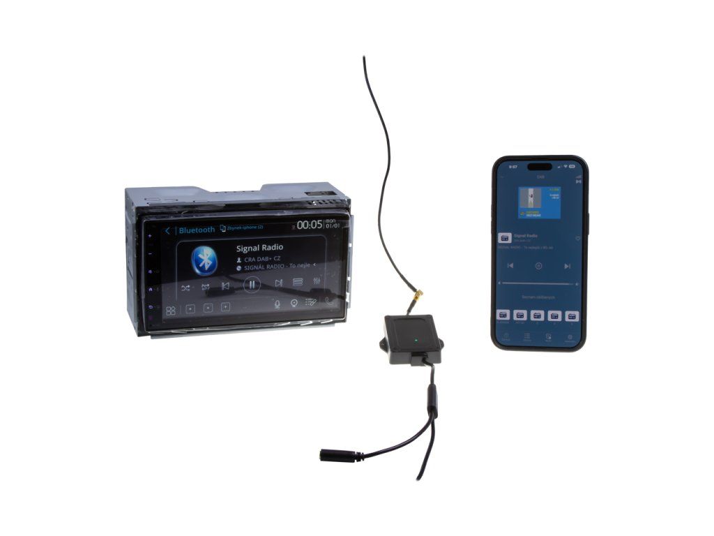 • Umožní příjem moderního digitálního vysílání DAB+ bez nutnosti měnit autorádio.