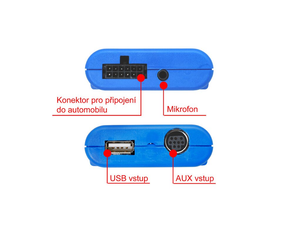 - nepodporuje zobrazení telefonního seznamu, názvů skladem a textů na displaji autorádia