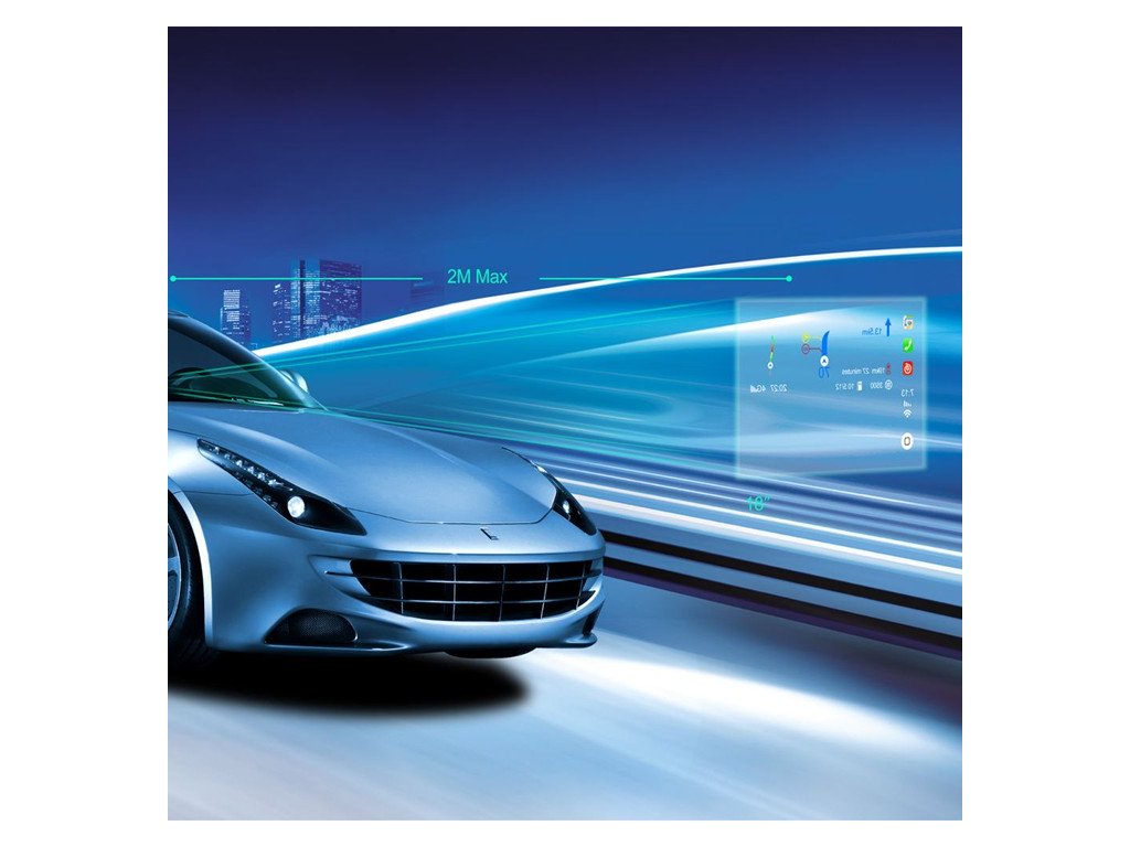 • zobrazuje virtuální obraz 2 m před vozidlem, řidič má neustále výhled na silnici.