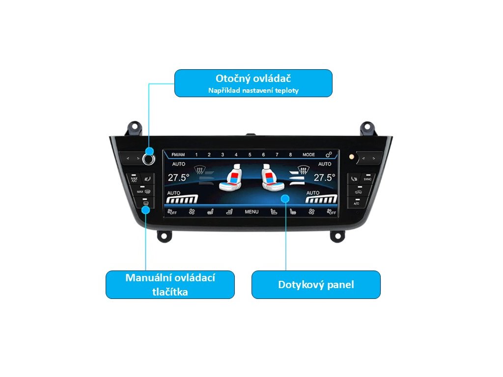 Ovládací panel klimatizace s dotykovým 8,8" displejem. Tímto panelem můžete nahradit originální mechanicky ovládaný panel vozidla a rozšířit tím i funkce vašeho vozu.