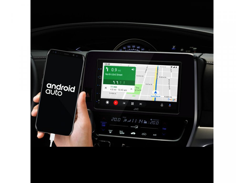 Stačí připojit přes USB a máte snadný přístup ke všemu od aplikací Google až po Mapy Google z přijímače JVC.