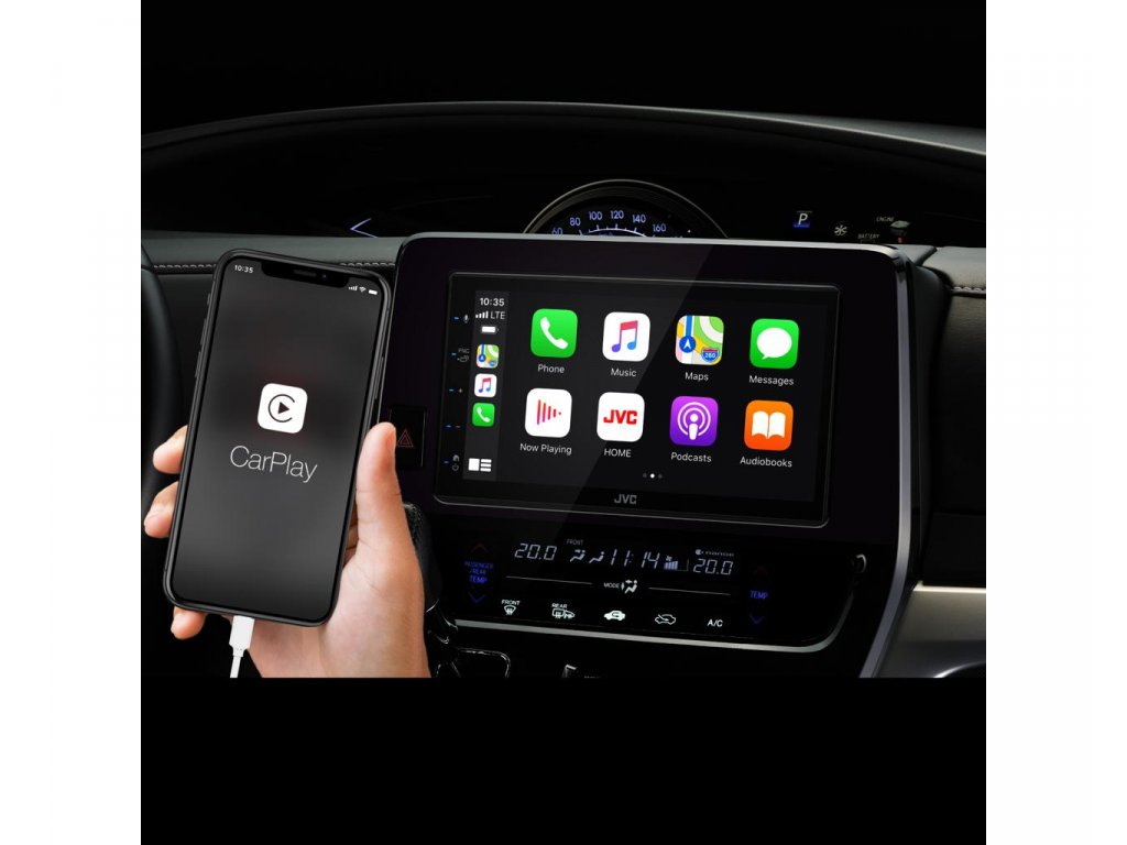 S multimediálním přijímačem JVC se věci ještě lépe - prostě promluvte se Siri nebo se dotkněte displeje přijímače a získáte pokyny z aplikace Apple Map, telefonujte, poslouchejte hlasovou schránku, posílejte a přijímáte texty a poslouchejte hudbu všemi způsobem, který vám umožňuje zůstat soustředěný na silnici.