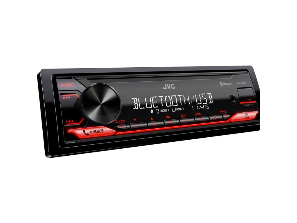 JVC autorádio bez mechaniky/Bluetooth/USB/AUX/červená barva podsvícení/odním.panel