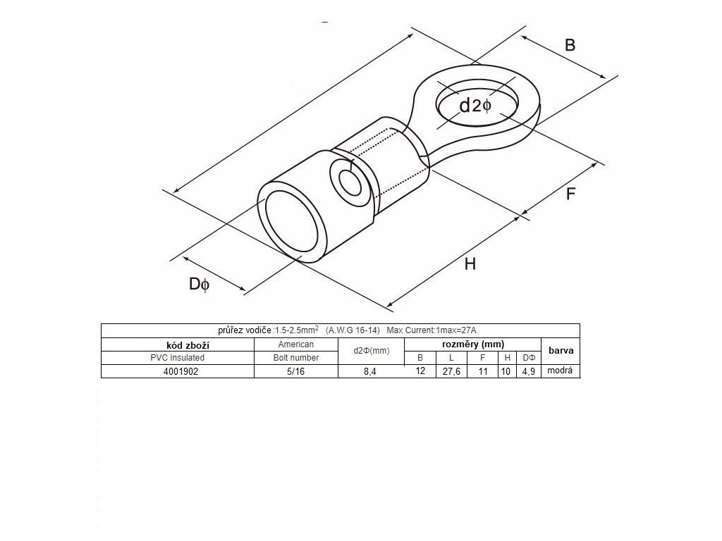 Kabelové očko M8 modré, 100 ks