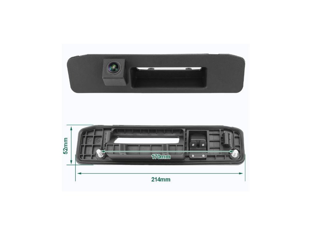 Barevná AHD/CVBS kamera integrovaná do madla kufru. Vhodné např. pro kombinaci s monitorem, nebo s adaptéry mi-xxx pro připojení k originální navigaci. Montáž: Vyjmete spínač kufru nad zadní SPZ a místo něj vložte do originálního otvoru tuto kameru, která zároveň nahradí původní spínač kufru.