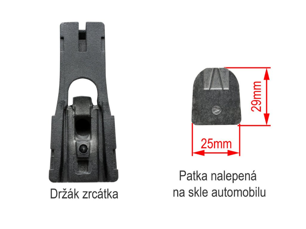 - zrcátko je umístěno na čelním skle na místě originálního zrcátka