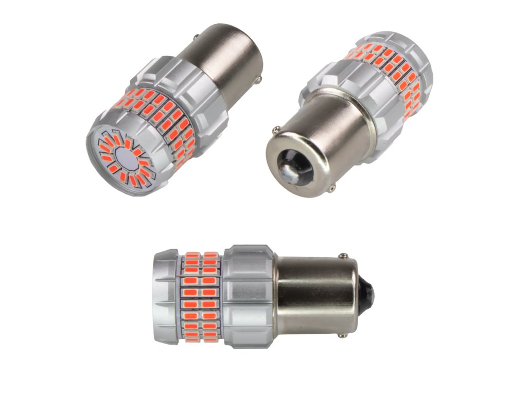 Nová generace LED autožárovek s paticí BA15S, červená, 60x LED čip 3014SMD.