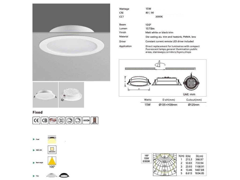 • montážní otvor: ø125 mm