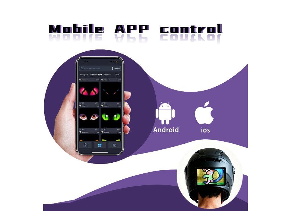 Tento LED panel je navržen jako externí doplněk na motocyklovou helmu, který slouží jako zadní světlo, směrovky a výstražný signalizační prvek a zároveň jako dekorativní světlo ovládané přes APP.