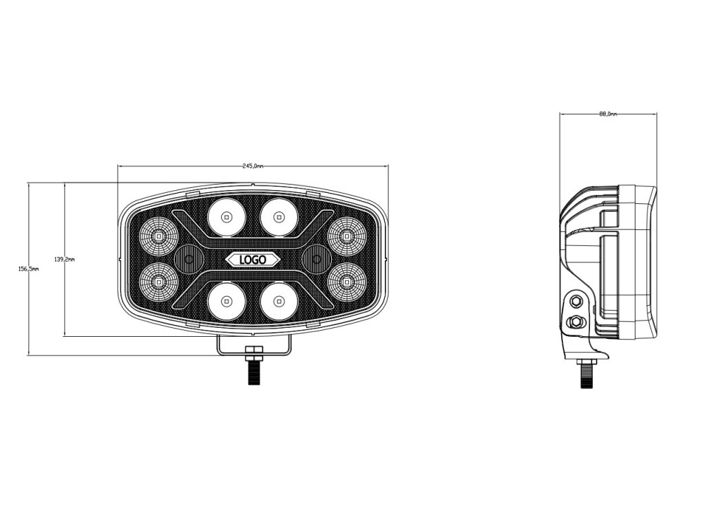 80 W dálkové LED světlo s pozičním a oranžovým výstražným světlem, vhodné zejména pro offroad vozy, nákladní automobily, bagry, nakladače a jinou pracovní techniku.