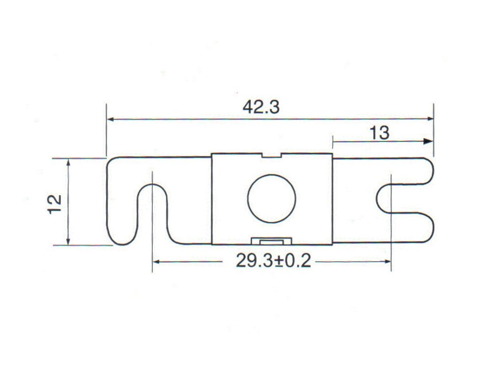 Mini ANL pojistka - hodnota 25A - stříbrná barva kovových částí - barevné značení: růžová - rozměr: 42,3 x 12mm (D x Š) - rozteč šroubů: 29,3mm