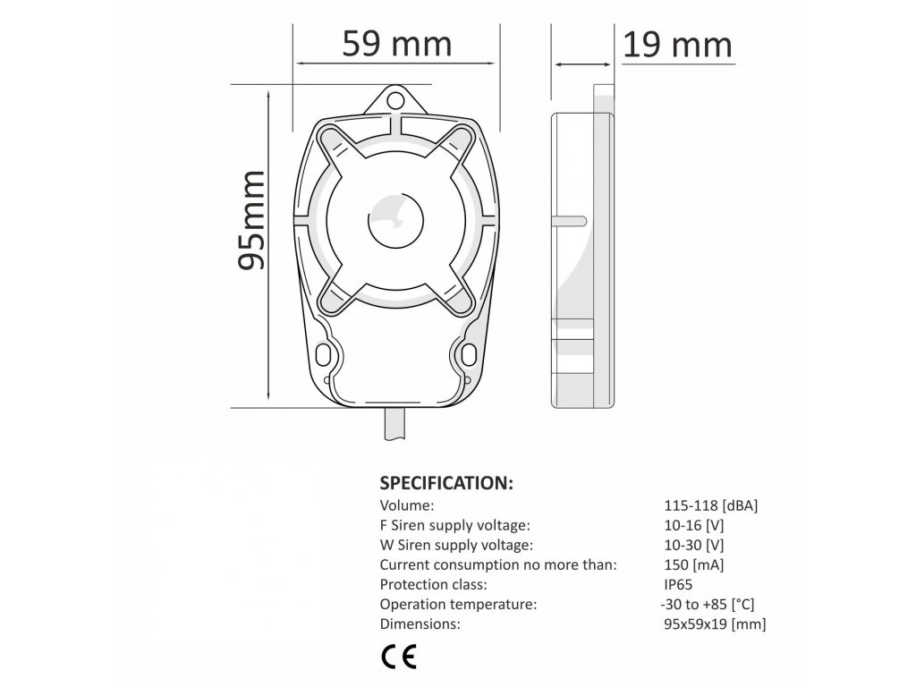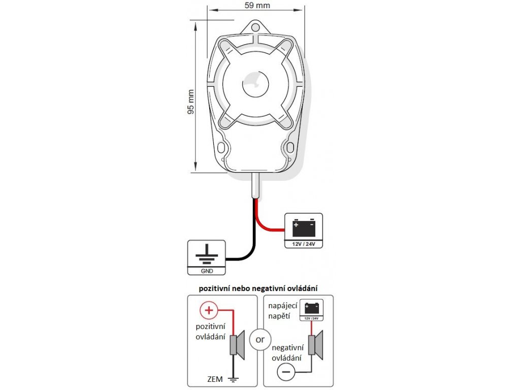 Elektronický obvod sirény je hermeticky uzavřený a odolný vlhkosti.