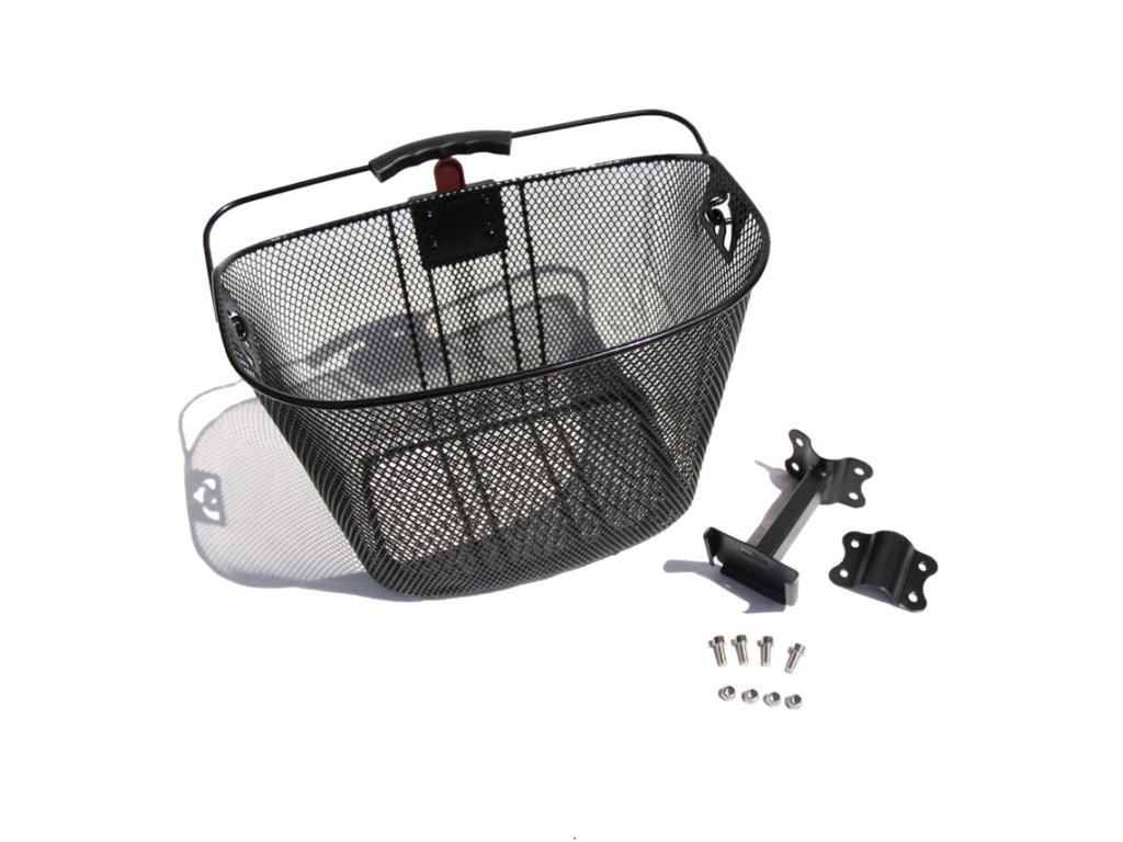 Odnímatelný košík, černá barva. Připevnění na tyč řídítek nebo na tyč sedla. Rozměry bez držáku 35x24x26 cm (šířka 35 cm, délka 24 cm, hloubka 26 cm). Objem cca. 12 litrů