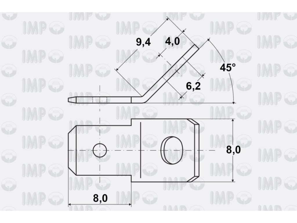 Nýtovací konektor 6,3mm - 45°, cín.mosaz, Ø 6,2mm, balení 100ks