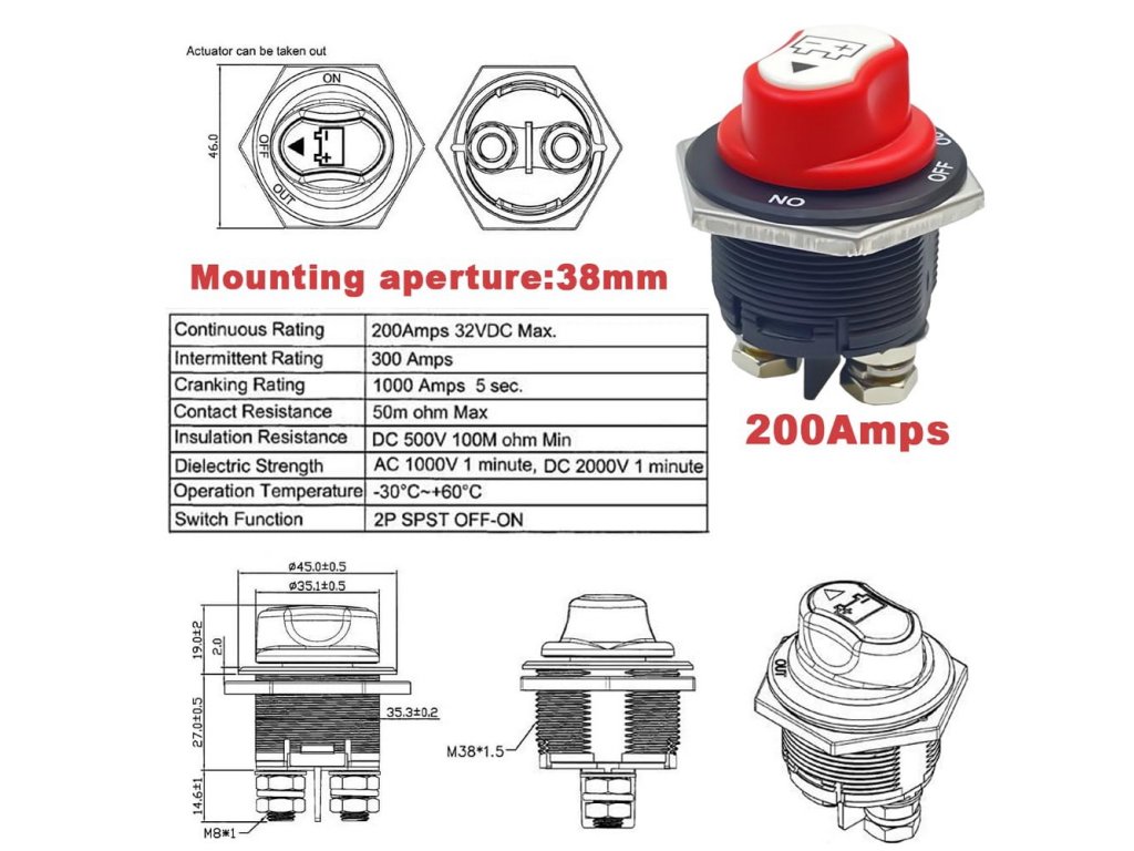 Odpojovač baterie 200A, 32V, odnímatelná klička