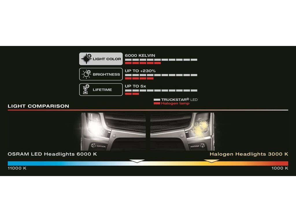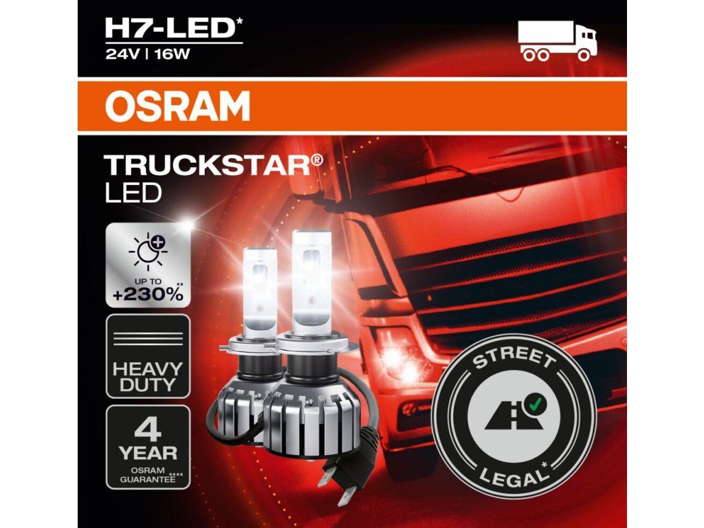 TRUCKSTAR H7 LED je nyní na trhu první žárovka OSRAM schválená pro silniční provoz (1) pro 24 V vozidla.