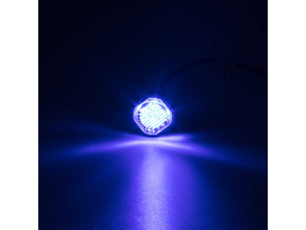 Přídavné modré výstražné LED světlo pro zápustnou montáž nebo montáž na povrch (držák v balení).