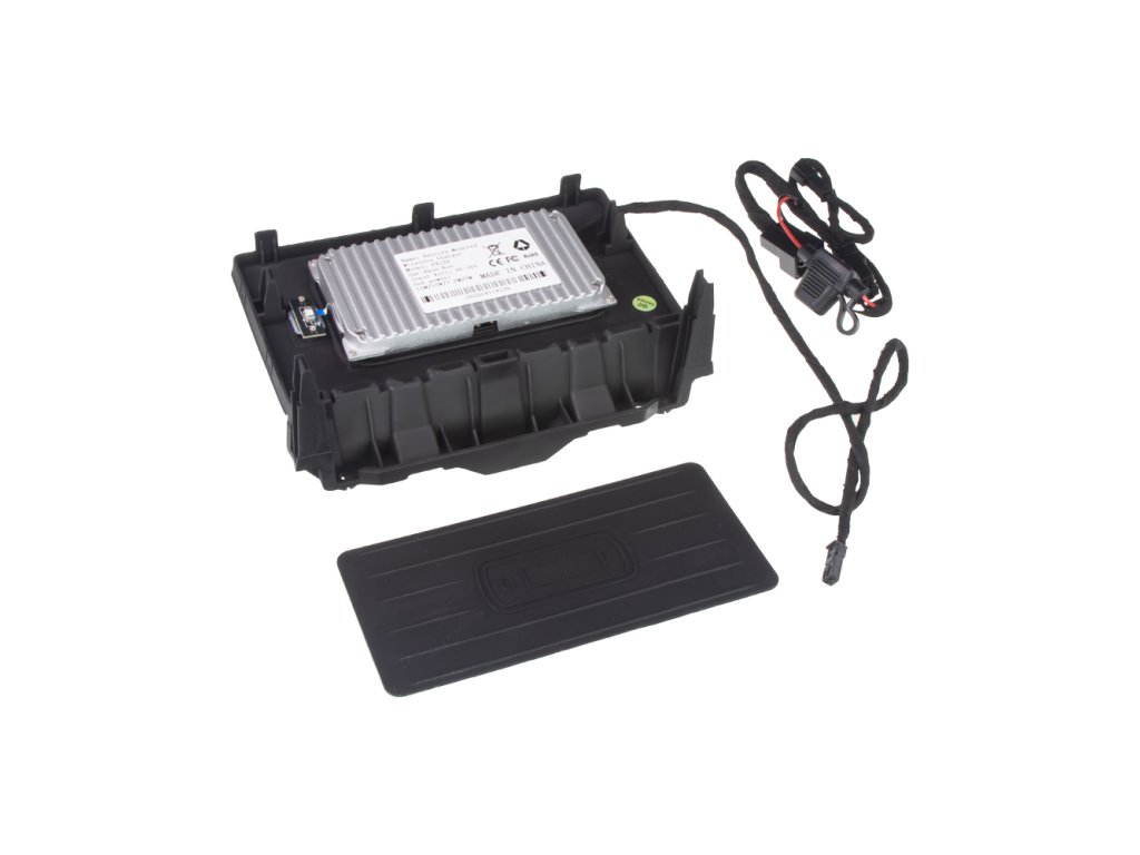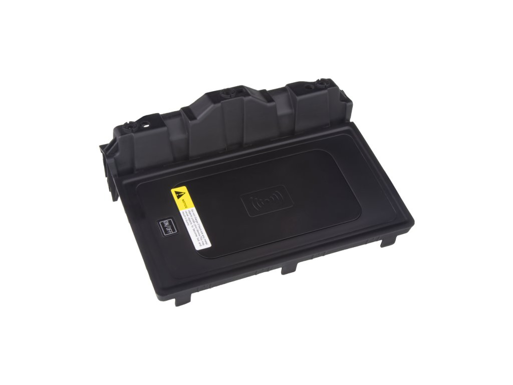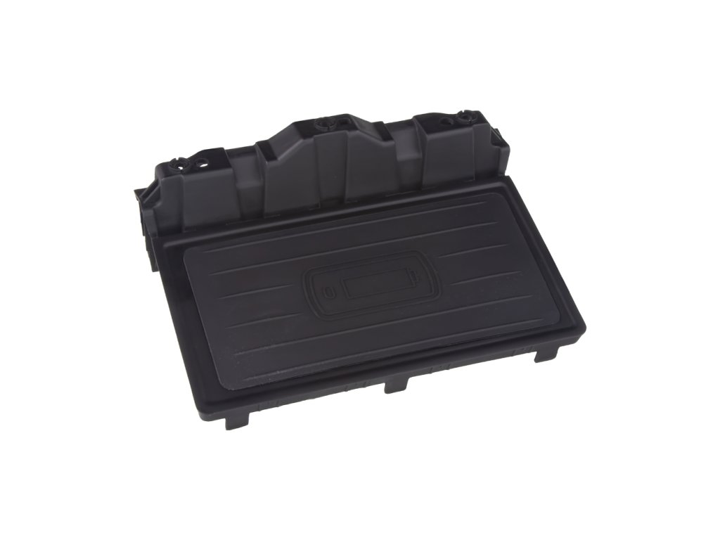 Nabíjecí přihrádka pro bezdrátové dobíjení mobilních telefonů prostřednictvím technologie Qi.