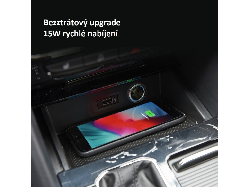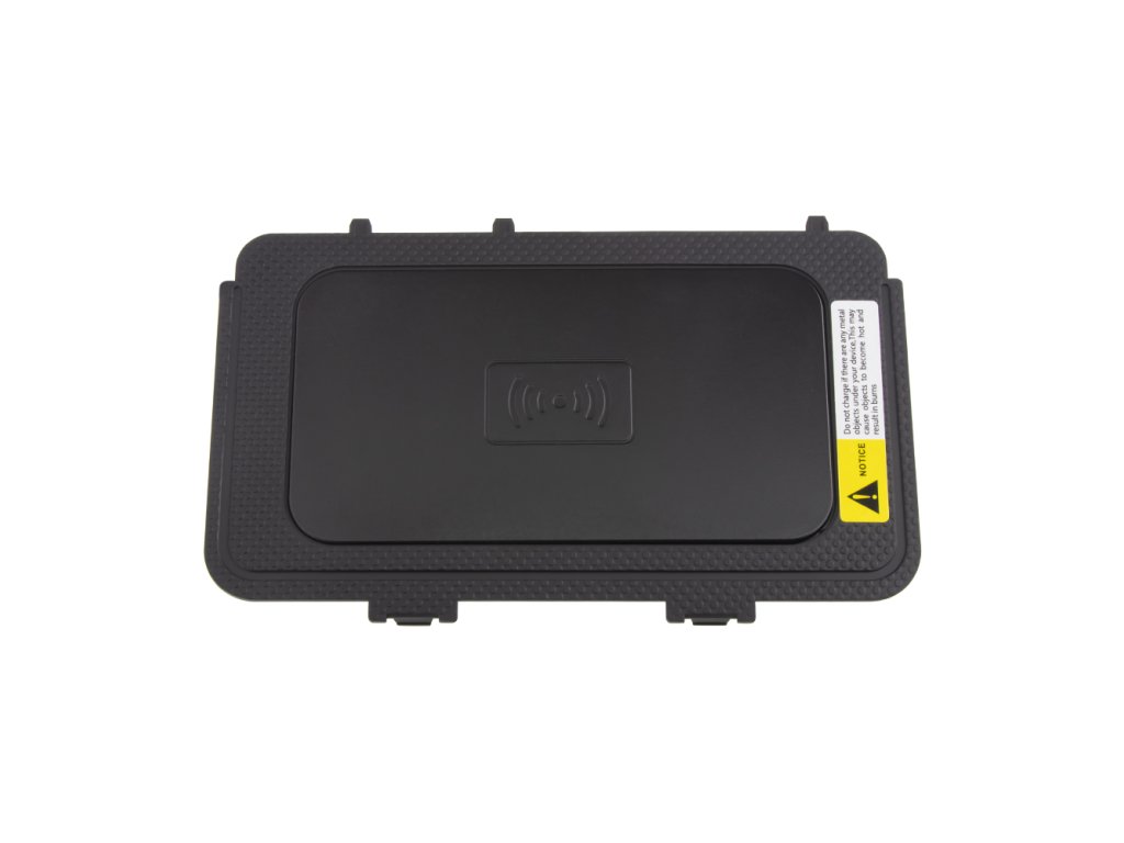 Nabíjecí přihrádka pro bezdrátové dobíjení mobilních telefonů prostřednictvím technologie Qi.