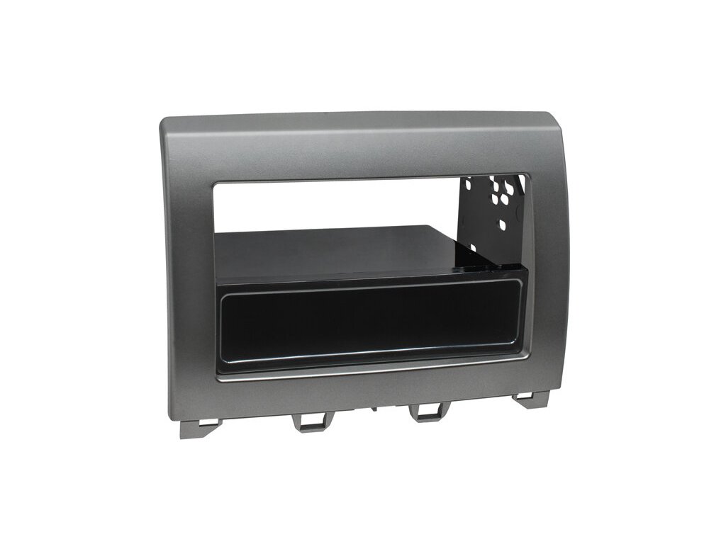 Adaptér obsahuje rámeček + odkládací kaslík pro instalaci 1DIN autorádia a rámeček pro 2DIN autorádia, boční plastové úchyty, šrouby