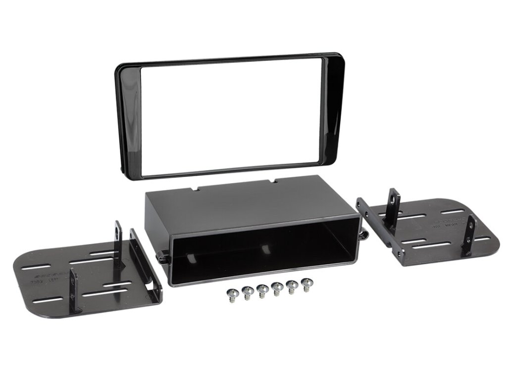 Rozměry otvoru odpovídají rozměrům čelního panelu 2DIN autorádií Kenwood, Alpine, Clarion, JVC,Pioneer, Macrom, Autosonik....