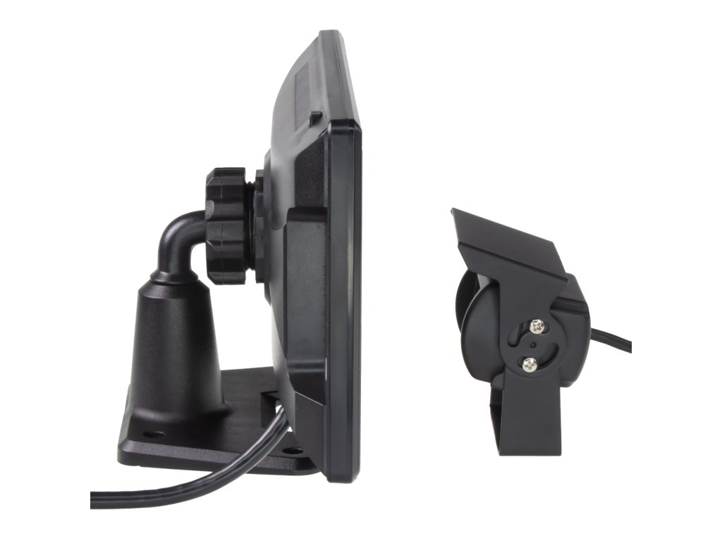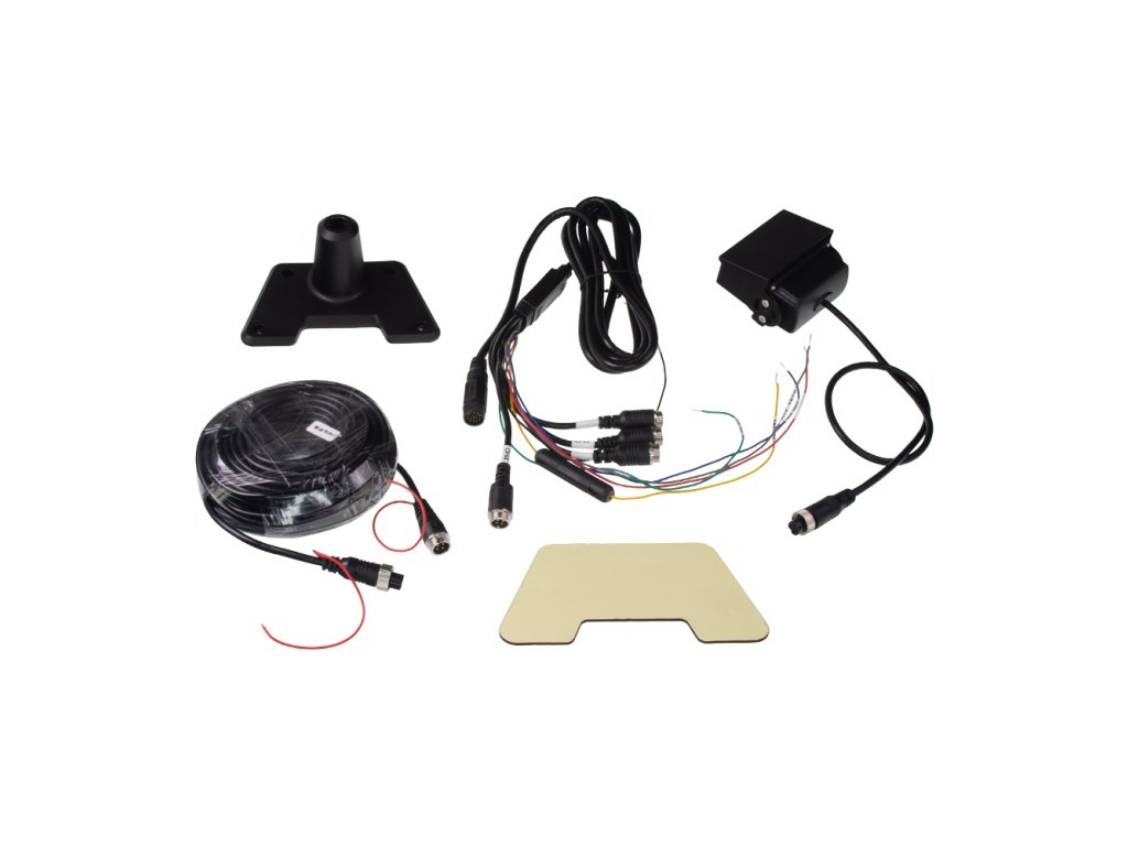 Obsah balení: Monitor, držák pro pevnou montáž + oboustranná páska, napájecí kabel pro připojení kamery na palubní napětí (ACC+BAT), zadní 4PIN kamera+ 4PIN 15m propojovací kabel.