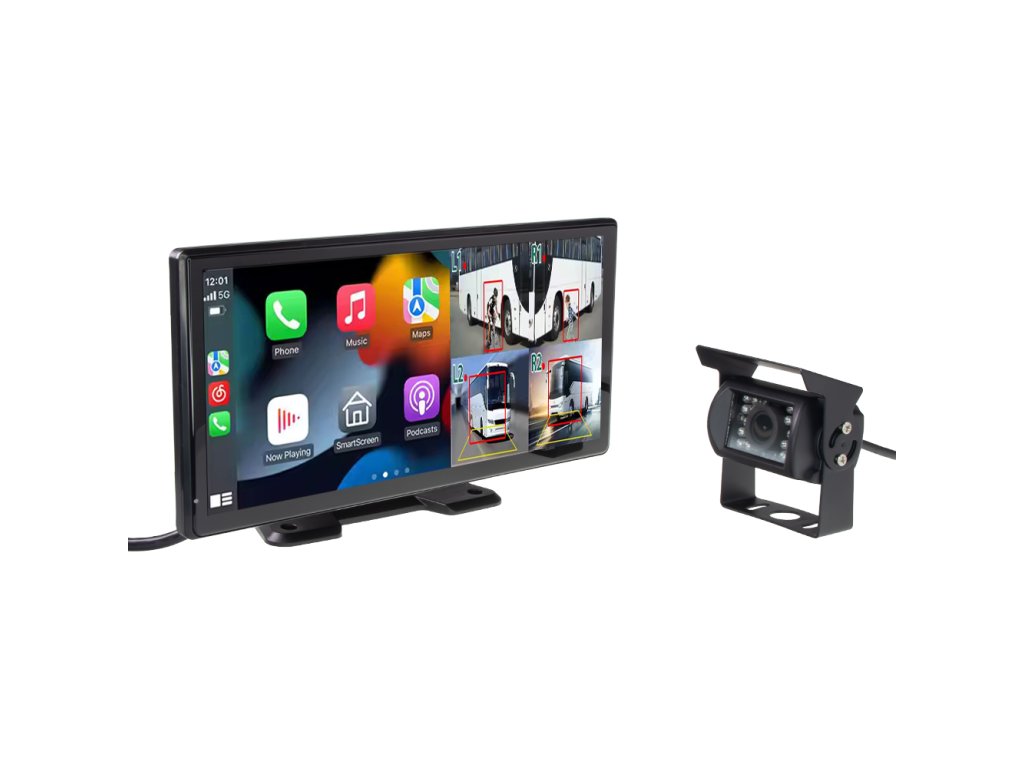 Set monitor 10,36" 4x 4PIN s Apple CarPlay, Android auto, Bluetooth, DVR, BSD, + kamera + 15m kabel