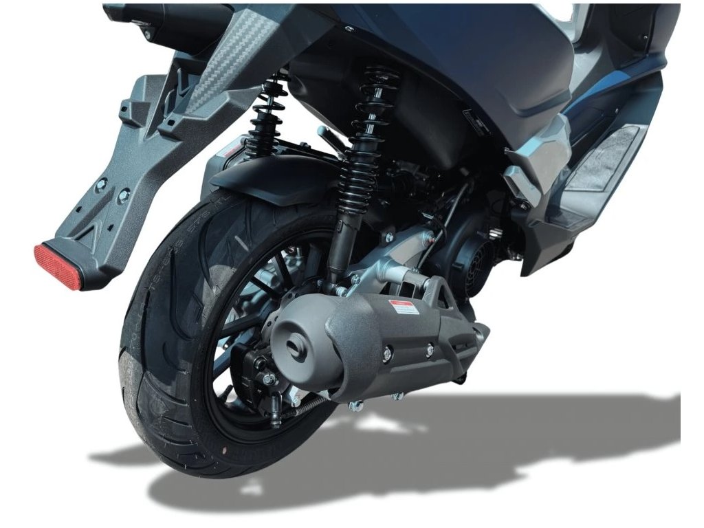 Skútr je vybaven čtyřtaktním motorem s elektronickým vstřikováním paliva, 13“ koly a kotoučovými brzdami.