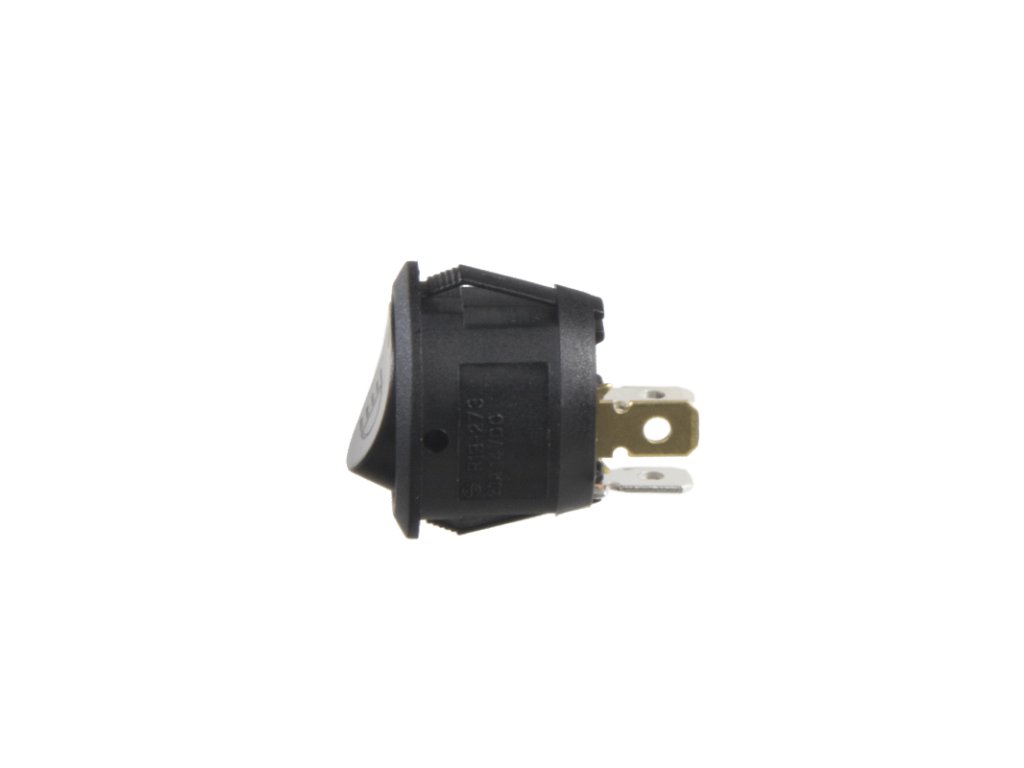 Spínač kolébkový kulatý 20 A se zeleně podsvíceným symbolem světel a červenou kontrolkou, pro napájecí napětí 12 V / 20 A, průměr otvoru 20,2 mm.