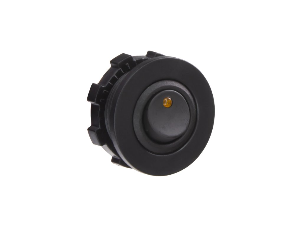 Spínač kolébkový kulatý 20A oranžová LED. Spíná kladné napětí mezi kontakty 1 a 2, na kontaktu 3 je kostra pro podsvícení.