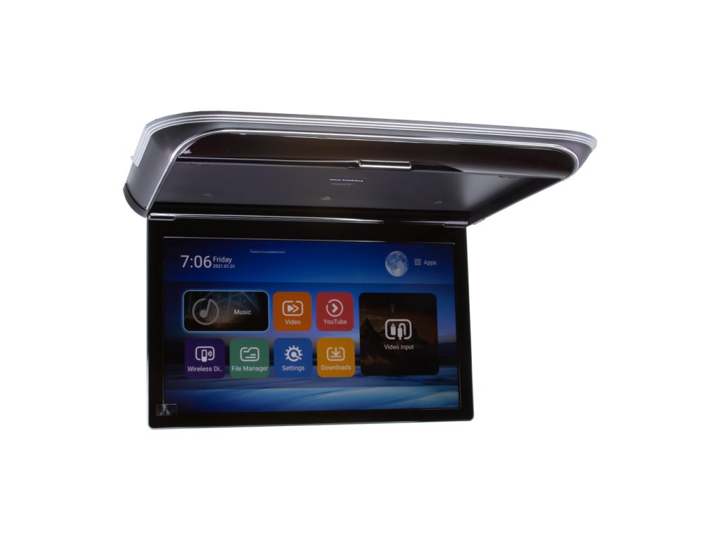 Stropní LCD monitor 15,6" s OS. Android USB/HDMI/IR/FM, dálkové ovládání se snímačem pohybu, černá